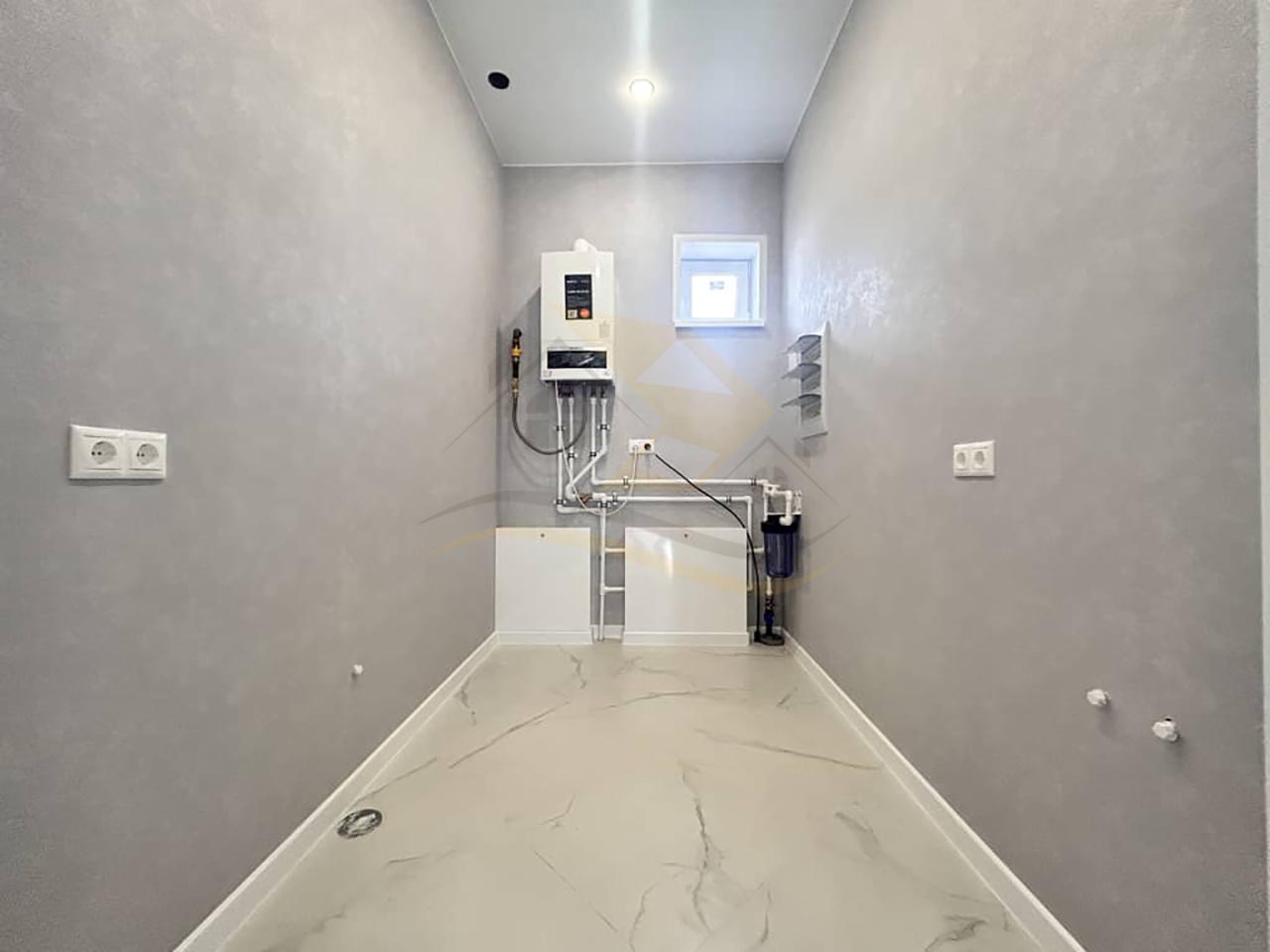 - В доме общей площадью 107 кв. м. имеется: прихожая (4,0 кв. м.), большая гостиная комната с кухней ( 45 кв. м.), 3 - раздельные спальни (18,6 / 16,9 / 15,5 кв. м.), санузел, бойлерная и прачечная комната. Сделан современный ремонт в светлых тонах: в прихожей, гостиной и ванной комнате установлен теплый пол с плиткой, в комнатах радиаторы с ламинатным покрытием, современные окна ПВХ, входная дверь капитальная - металлическая, крыша металлочерепица, фундамент ленточный (армированный), стены пенобетонный блок (утеплены).