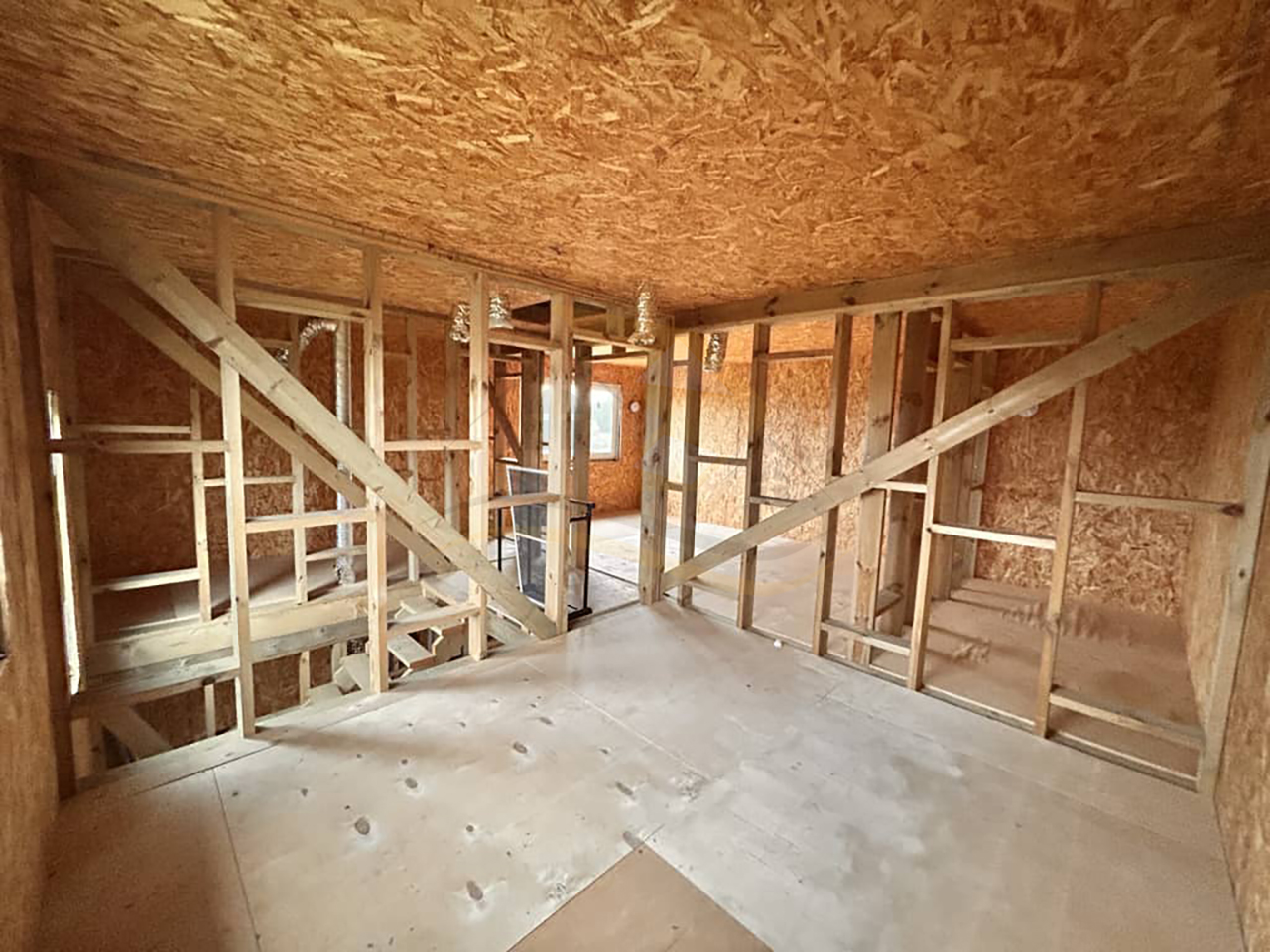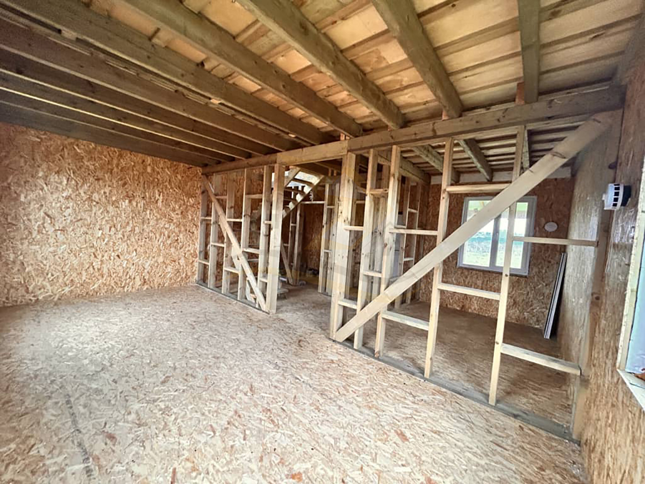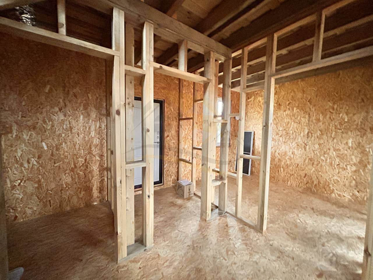 • Пол первого этажа усиленный, подготовлен под стяжку.