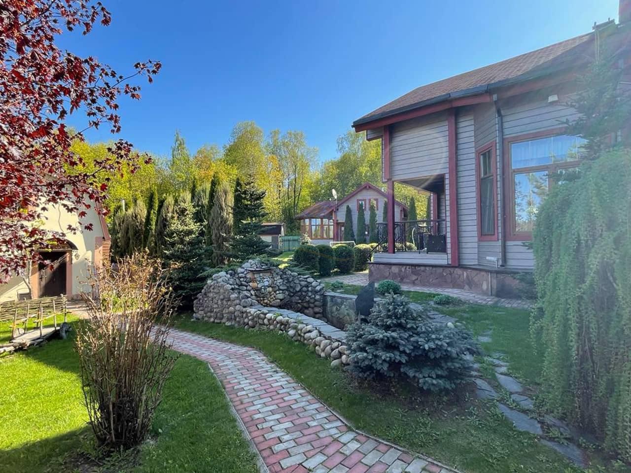 На участке выполнен ландшафтный дизайн: газон, дорожки, садовое освещение, посажены 130 хвойных и декоративных деревьев и кустарников. Здесь можно полностью перезагрузится, расслабиться и восстановить силы, насладиться тишиной, чистейшим воздухом, спокойствием и единением с природой. Участок граничит с одной стороны с лесом и Березовой рощей с другой.