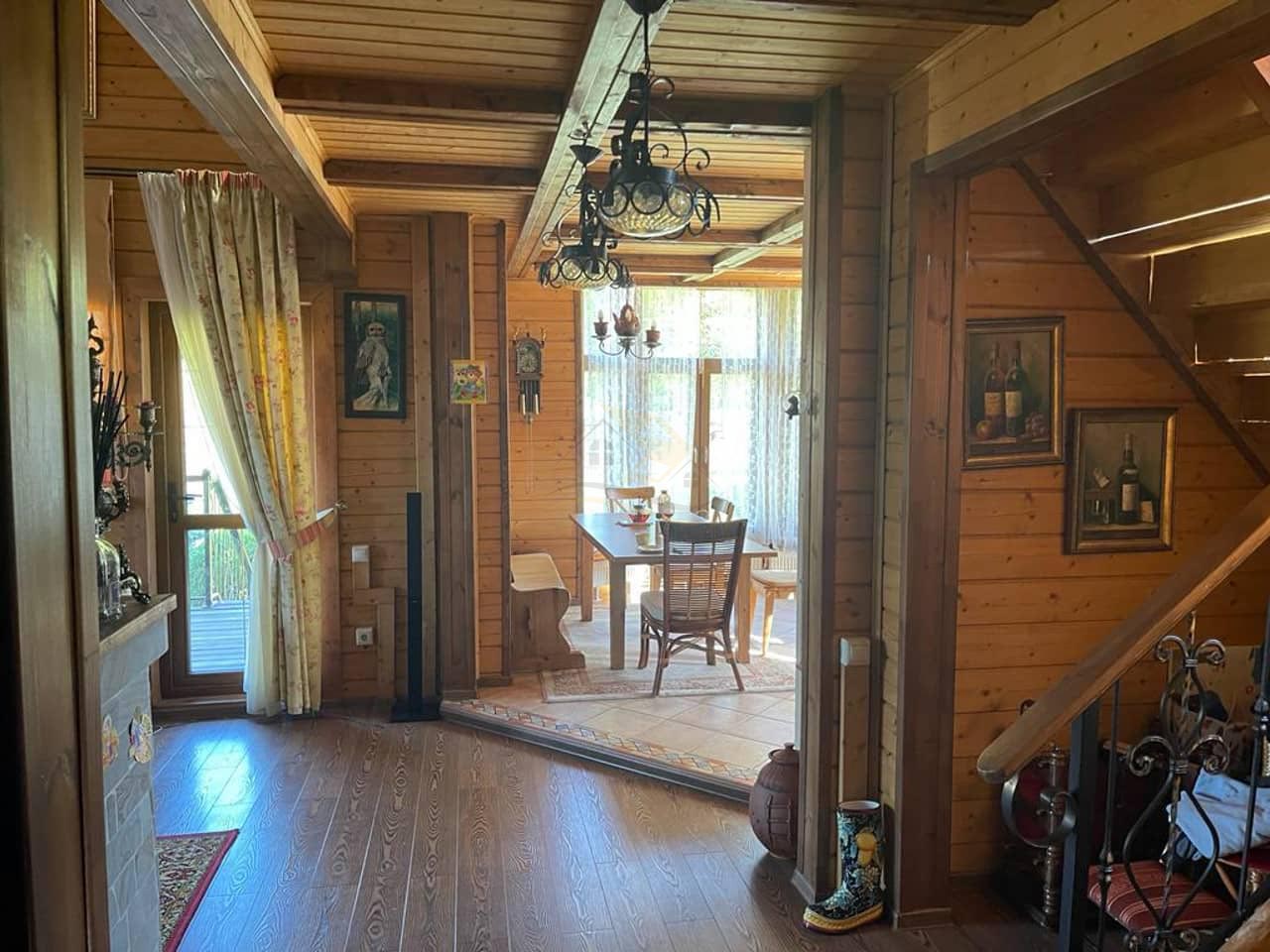 Дом из клеёного бруса, отделка выполнена с применением натуральных и качественных материалов.