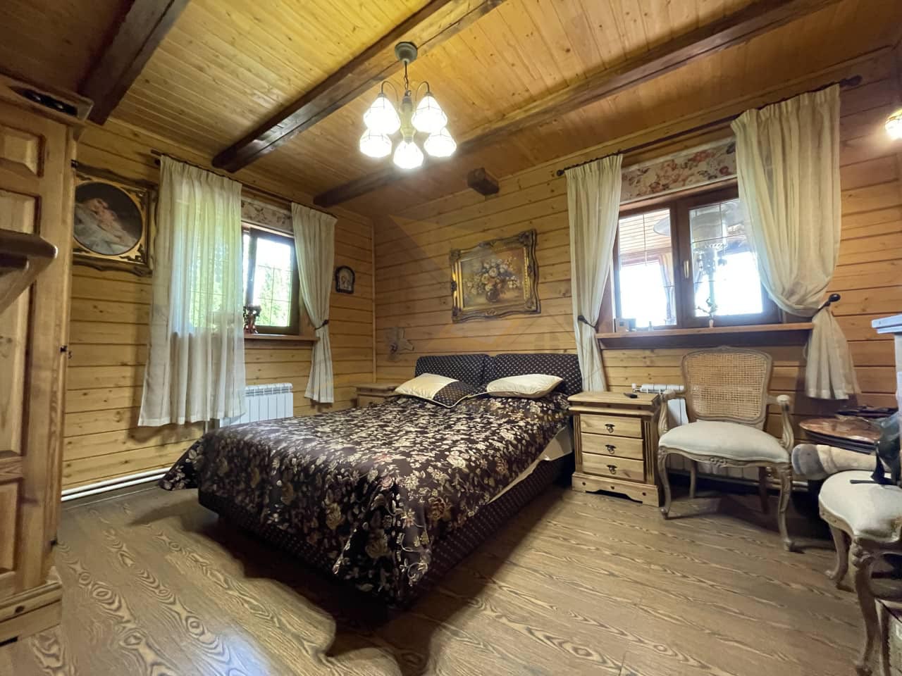Отделка в теплых тонах, высокие потолки, большое количество окон и естественного света, а также наличие второго света дают дополнительное ощущение комфорта и уюта в нашем доме.