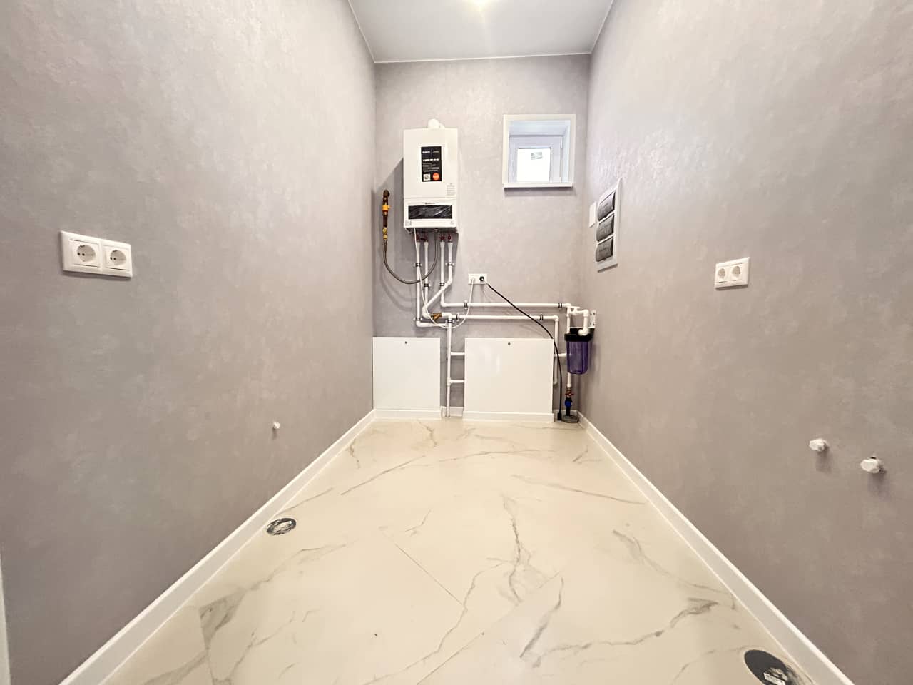 - В доме общей площадью 107 кв. м. имеется: прихожая (4,0 кв. м.), большая гостиная комната с кухней ( 45 кв. м.), 3 - раздельные спальни (18,6 / 16,9 / 15,5 кв. м.), санузел, бойлерная и прачечная комната. Сделан современный ремонт в светлых тонах: в прихожей, гостиной и ванной комнате установлен теплый пол с плиткой, в комнатах радиаторы с ламинатным покрытием, современные окна ПВХ, входная дверь капитальная - металлическая, крыша металлочерепица, фундамент ленточный (армированный), стены пенобетонный блок (утеплены).