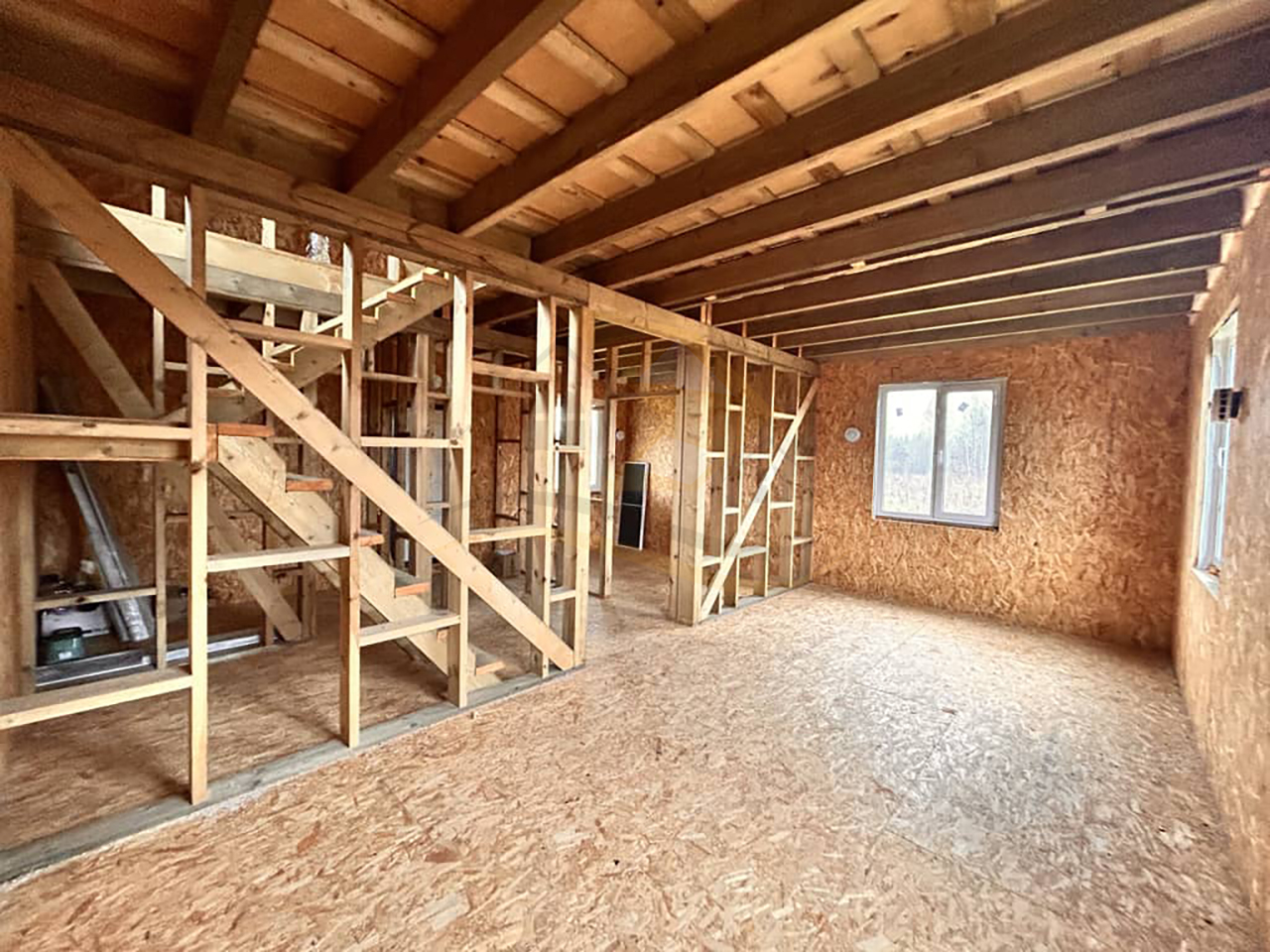 • Пол первого этажа усиленный, подготовлен под стяжку.